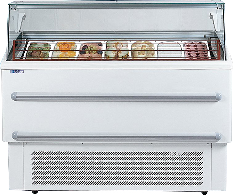 Витрина UGUR UDR 7B предназначена для демонстрации, охлаждения и долгосрочного хранения мягкого мороженого на предприятиях общественного питания и торговли. Модель оснащена 2 раздвижными створками и механическим термостатом. Створки выполнены из закаленного стекла.