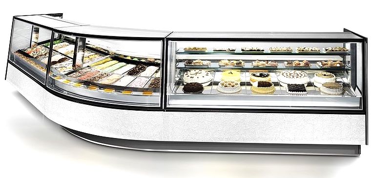 Угловая витрина для мороженого ISA Kaleido AE 45 A H117 используется на предприятиях общественного питания и торговли для демонстрации и хранения мороженого, сорбета и йогурт-мороженого. Каркас изготовлен из углеродистой стали, окрашенной порошковой краской, дно зоны выкладки - из полированной нержавеющей стали, задняя панель - из пластифицированной стали, декоративные боковые панели - из ламината и контейнеры - из стали. Цельный корпус имеет изоляцию из пенополиуретана, вспененного углекислотой, без использования озоноразрушающих веществ.