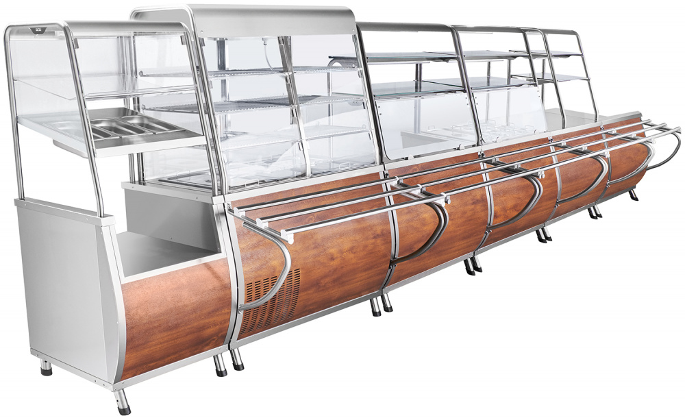 - Двойная полка над мармитом с подсветкой для выкладки блюд