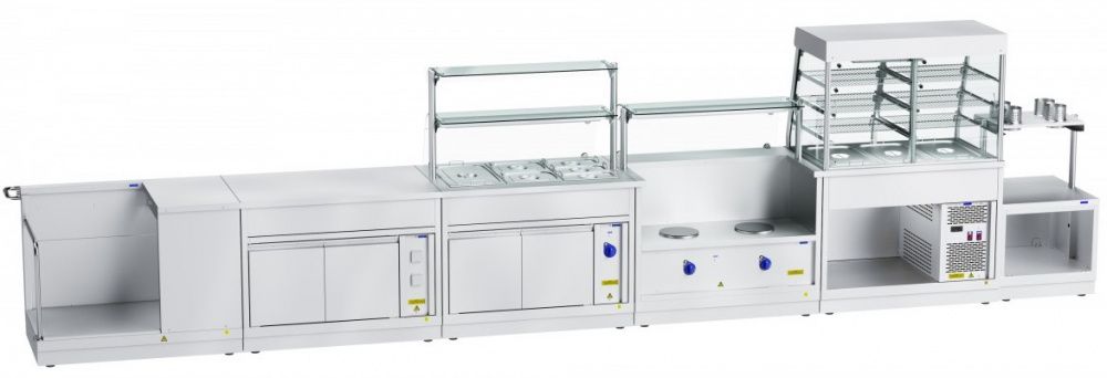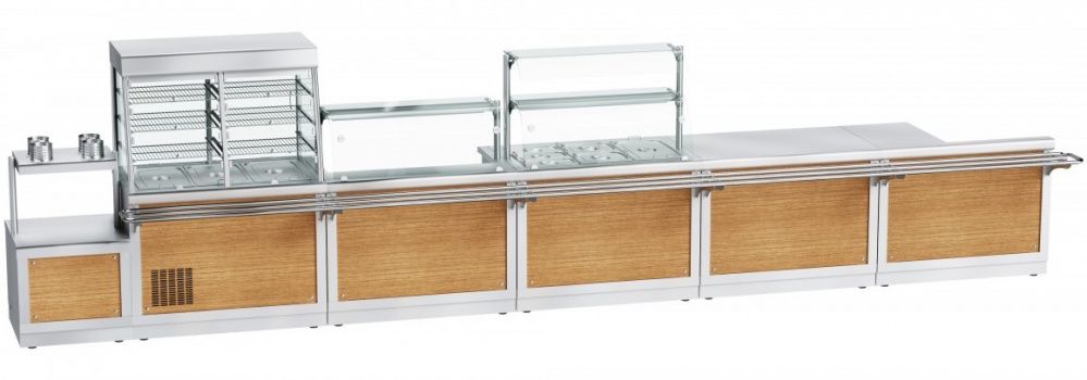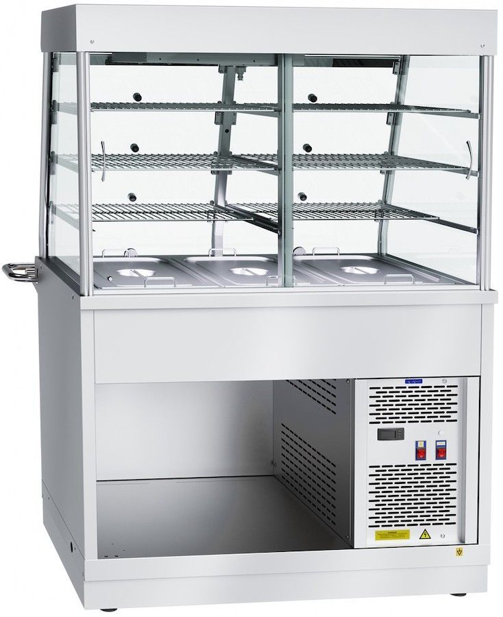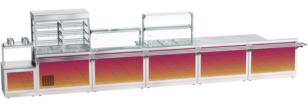 • Сверху над столешницей расположена охлаждаемая витрина с полками