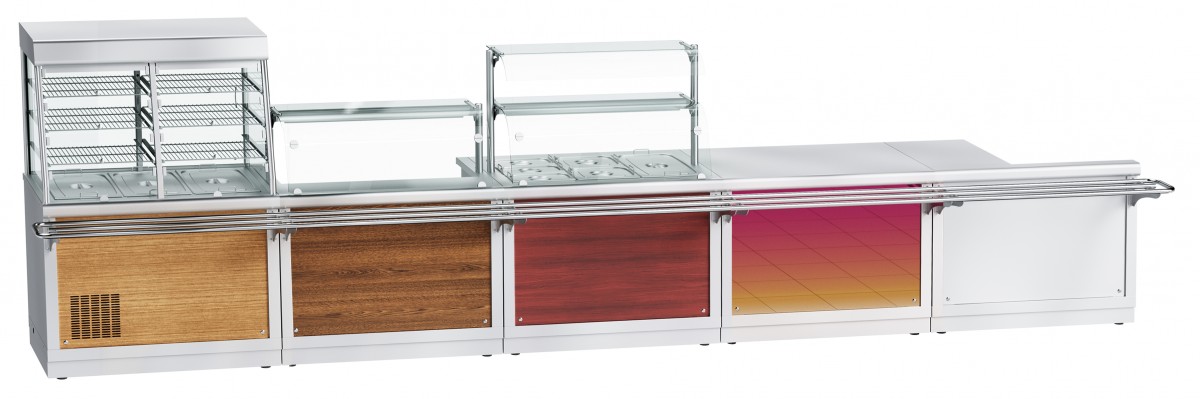 Прилавок-витрина Abat ПВТ-70Х-06 предназначен для демонстрационной выкладки, кратковременного хранения и поддержания в теплом состоянии готовых блюд и закусок в составе линий раздач HOT-LINE на предприятиях общественного питания и торговли. Модель с подогреваемой столешницей, 2 стеклянными полками и LED-подсветкой. Материал съемных панелей - высококачественная нержавеющая сталь.