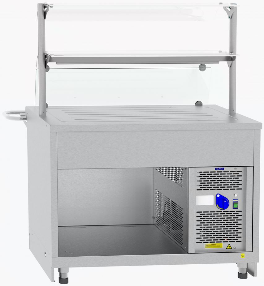 • Внутренний объем прилавка обогревается теплым воздушным потоком, создаваемым тепловентилятором, который обеспечивает равномерное распределение температуры
