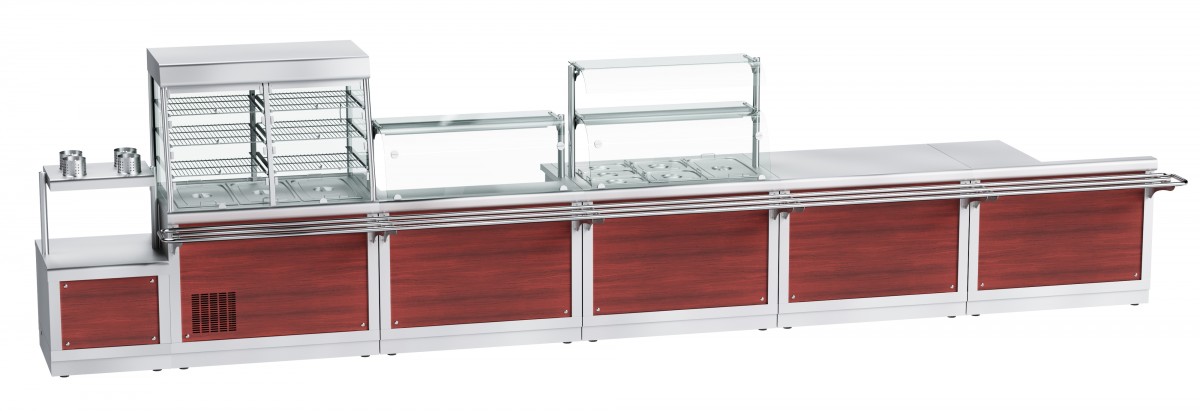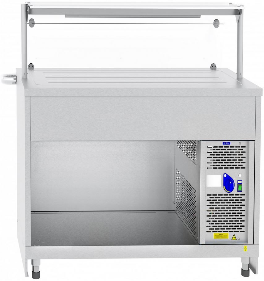 Прилавок Abat ПВВ(Н)-70Х-05-НШ предназначен для демонстрационной выкладки, кратковременного хранения и охлаждения различных блюд в составе линий раздач HOT-LINE на предприятиях общественного питания и торговли. Модель с охлаждаемой столешницей, полкой, LED-подсветкой, шкафом для хранения инвентаря и регулируемыми ножками. Материал съемных панелей - высококачественная нержавеющая сталь.