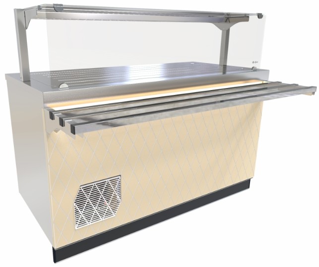 Прилавок-витрина Abat ПВВ(Н)-70Е-05-НШ используется для демонстрационной выкладки, охлаждения, кратковременного хранения закусок, третьих блюд и напитков в составе линий раздач на предприятиях общественного питания, торговли и пищевых производствах. Модель оснащена охлаждаемой поверхностью, со светодиодной подсветкой, полкой, нейтральным шкафом для хранения кухонного инвентаря и регулируемыми по высоте ножками.