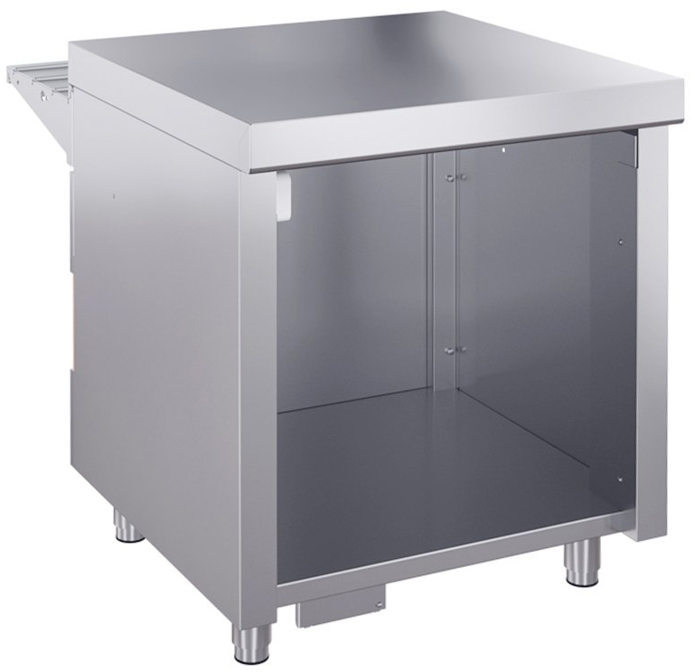 Кассовый стол ATESY Ривьера КСУ-700-02 используется на предприятиях общественного питания и торговли для оборудования рабочего места продавца-кассира. Модель оснащена розеткой для подключения кассового аппарата, расположенной со стороны обслуживающего персонала. Корпус и направляющая для подносов выполнены из нержавеющей стали AISI 430, столешница - из нержавеющей стали и усилена листом ламинированной ДСП толщиной 16 мм, ножки - из нержавеющей стали с пластиковой опорной частью.