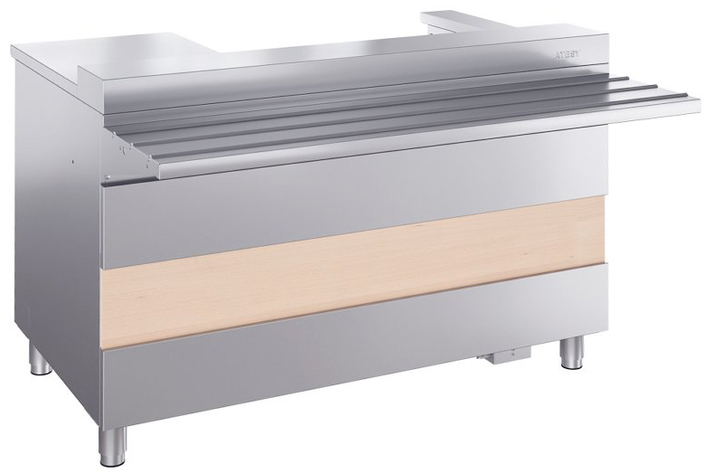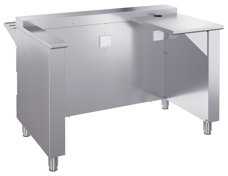 Кассовый стол ATESY Ривьера КСП-1120-02 используется на предприятиях общественного питания и торговли для оборудования рабочего места продавца-кассира. Модель оснащена розеткой для подключения кассового аппарата, расположенной со стороны обслуживающего персонала. Корпус и направляющая для подносов выполнены из нержавеющей стали AISI 430, столешница - из нержавеющей стали и усилена листом ламинированной ДСП толщиной 16 мм, ножки - из нержавеющей стали с пластиковой опорной частью.