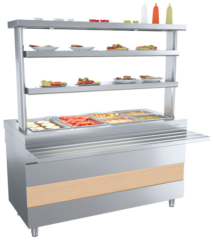 - Предназначен для размещения гастроемкостей формата GN 1/1, GN 1/2 и GN 1/3 (при помощи перемычек, входящих в комплект поставки) максимальной глубиной 150 мм