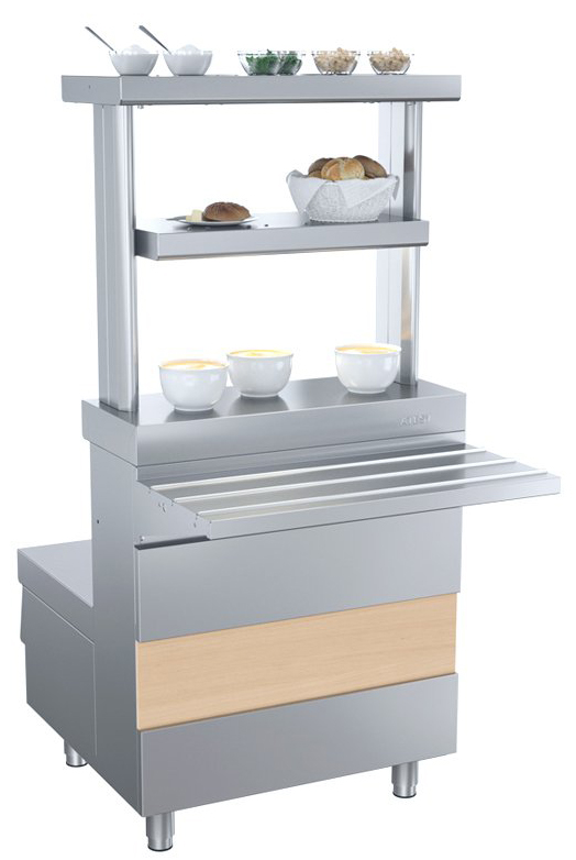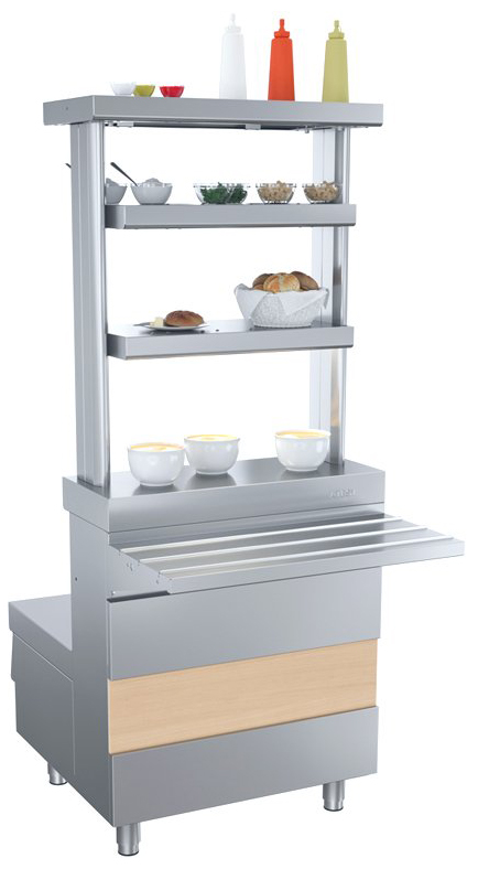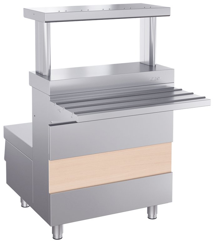 • Специальные отверстия позволяют установить 1-но, 2-х или 3-х ярусную полку на выбор, что дает возможность увеличить выкладку товара (полка приобретается отдельно) - светильник полки (только у 2-х или 3-х ярусных полок) обеспечивает подсветку столешницы