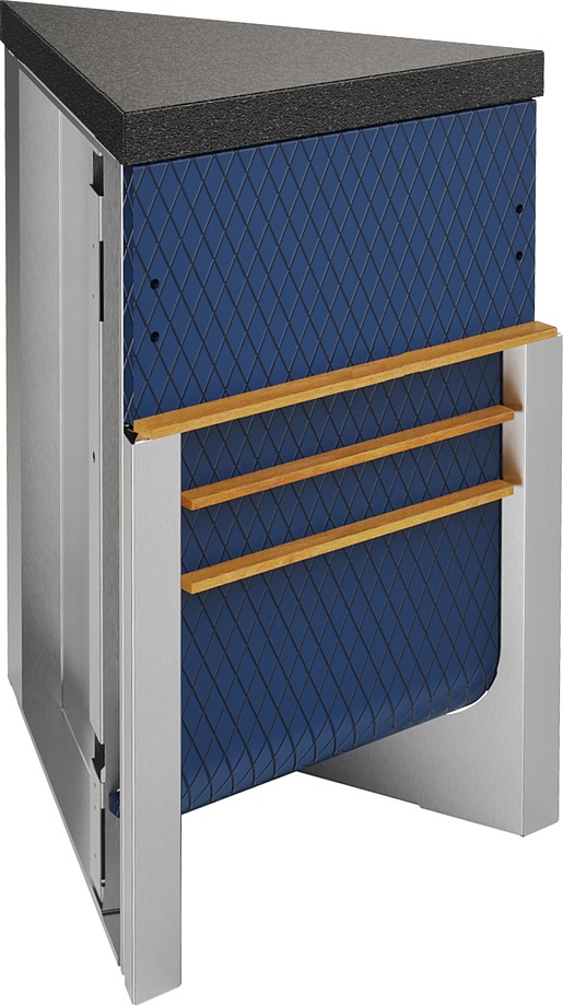 Прилавок нейтральный угловой Refettorio Case RU10A45 предназначается для использования в составе линии раздачи Case для выкладки, демонстрации и предпродажного хранения продуктов, холодных и горячих напитков, установки специализированного оборудования и создания внешнего изгиба фронтальной линии под углом 45° на предприятиях общественного питания и торговли. Углы столешницы проварены, крепежные элементы скрыты, модули столешниц стыкуются без зазоров. Материал столешницы - нержавеющая сталь, материал фасада - ламинированный МДФ, вставки выполнены из натурального дерева.