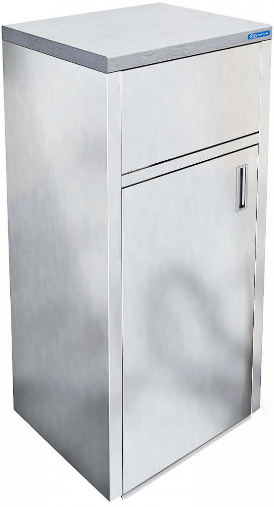 KAYMAN ССО-212/0605 предназначается для сбора, сортировки и временного хранения пищевых отходов, одноразовой посуды и упаковочной бумаги от продуктов. Контейнер поставляется на 4 колесах, объем - 110 л. Материал корпуса - нержавеющая сталь AISI 430, столешница усилена листом ЛДСП (16 мм).