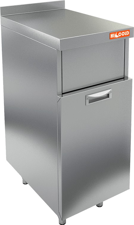 Мусорный бак HICOLD НБММБ-4/7БВ входит в состав барной линии на предприятиях общественного питания, торговли и пищевых производствах для сбора мусора. Материал корпуса - высококачественная нержавеющая сталь AISI 430, материал столешницы - нержавеющая сталь AISI 430, усиленная листом ДСП (толщина 1 мм).