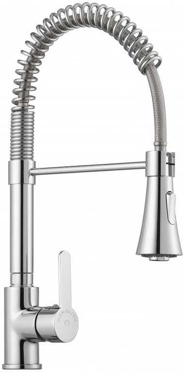 Смеситель Monolith EROS003 используется на предприятиях общественного питания, торговли и пищевых производствах для ежедневной подачи воды. Данная модель устанавливается на мойку и оснащена гибким шлангом с рычагом.
