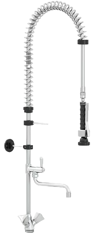 Душирующее устройство CanCan MT02 DELUX предназначено для мытья овощей и фруктов и удобного удаления крупных остатков пищи с кухонной посуды и инвентаря перед загрузкой в посудомоечную машину в моечных цехах, на предприятиях общественного питания, торговли и пищевых производствах. Материал корпуса, системы крепления к стене и смесителя - хромированная латунь, трубы - нержавеющая сталь, шланга - эластичный материал с ПВХ покрытием, в оплётке из нержавеющей стали, внутренней трубки - термоустойчивый EPDM.