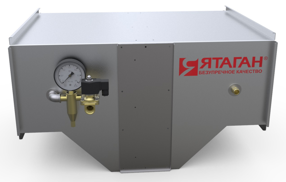 - Широкоугольные полноконусные форсунки для распыления воды, образующие мелкодисперсную водяную завесу во всем объеме входной секции гидрофильтра