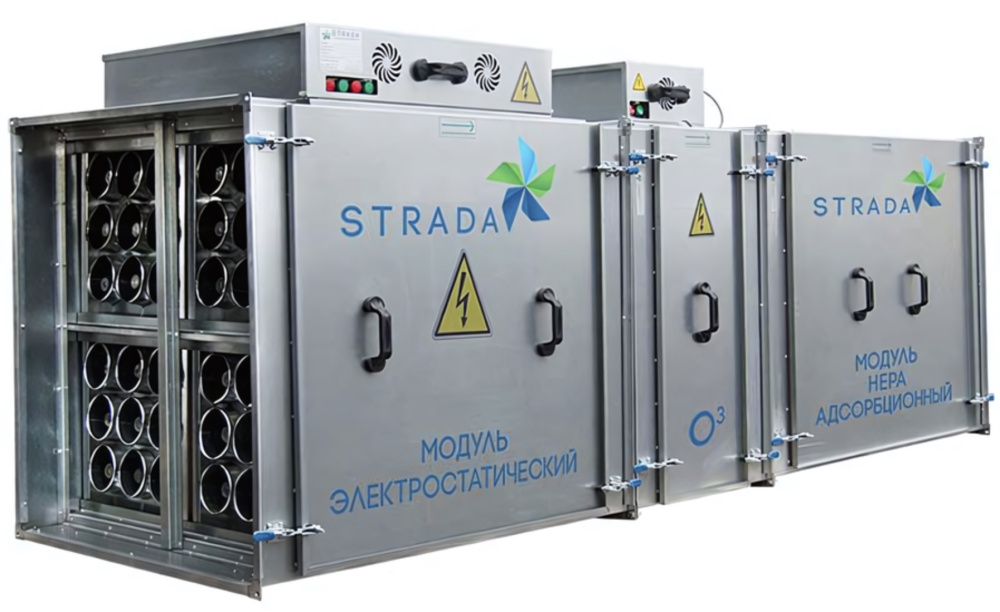 Второй и третьей ступенью являются последовательно расположенные модули электростатической фильтрации, которые обеспечивают полную очистку от дыма и частичную очистку от запахов.