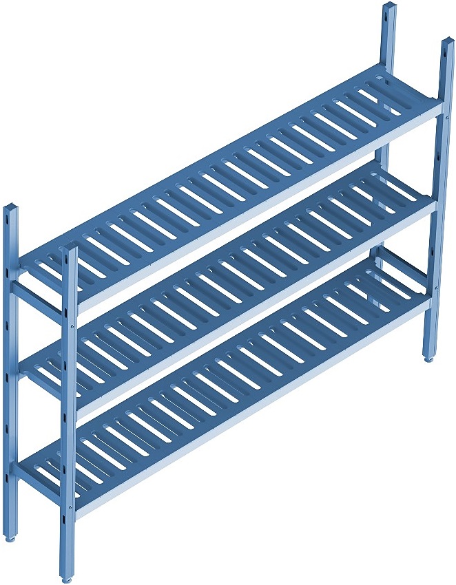 Стеллаж модульный базовый POLAIR LOAD.ME POLY 18AL.3PP40.15B используется на предприятиях общественного питания, торговли, пищевых производствах и складских помещениях. Данная модель может стыковаться с базовой и угловой секцией модульной стеллажной системой. Материал каркаса – анодированный алюминиевый профиль, материал решетчатых полок – армированный полипропилен, материал ножек – прочный сплав.