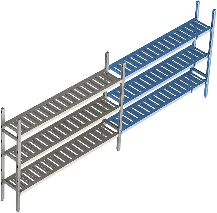 Стеллаж модульный линейный дополнительный POLAIR LOAD.ME POLY 18AL.3PP40.13Е используется на предприятиях общественного питания, торговли, пищевых производствах и складских помещениях. Данная модель может стыковаться с базовой и угловой секцией модульной стеллажной системой. Материал каркаса – анодированный алюминиевый профиль, материал решетчатых полок – армированный полипропилен, материал ножек – прочный сплав.