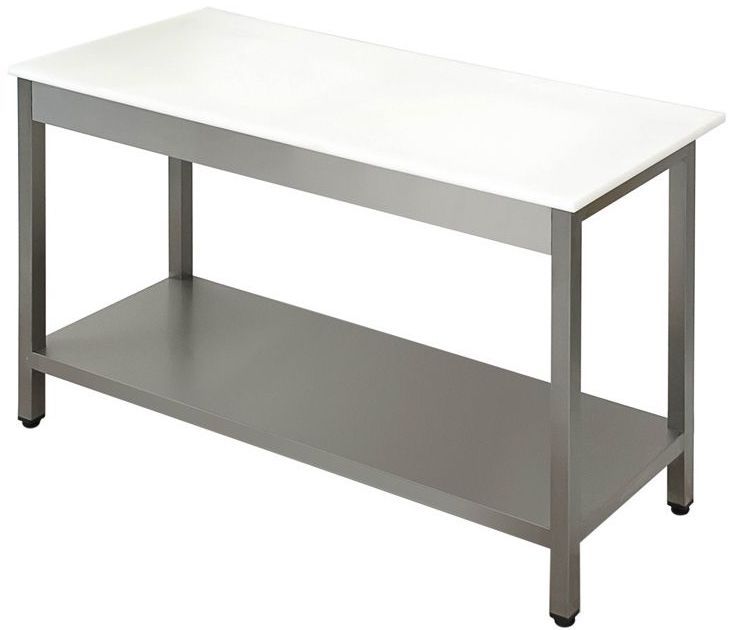 Стол разделочный Simeco СРП1207П используется на предприятиях общественного питания и торговли для разделки и приготовления различных блюд. Модель имеет сплошную нижнюю полку и фартук 100 мм по фасаду. Каркас стола выполнен из нержавеющей стали AISI 430, столешница - полипропилен толщиной 20мм. Ножки - труба 40х40 мм.