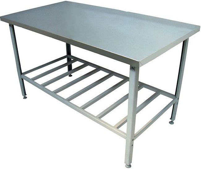Производственный стол СР-2/1200/600-ЮТ предназначен для раскатки теста и обработки ингредиентов для приготовления блюд на предприятиях общественного питания и торговли. Каркас и полка выполнены из оцинкованной стали, столешница - из нержавеющей стали, подложка столешницы - из ЛДСП, ножки - из уголка.