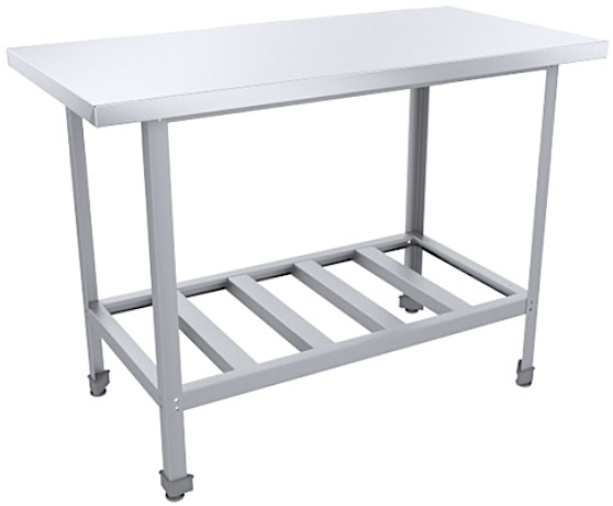 Производственный стол Пищевые Технологии Стандарт НК СРО-6/6СНК-М предназначен для обработки продуктов питания, раскатки теста и хранения кухонного инвентаря на предприятиях общественного питания и торговли. Модель оснащена регулируемыми по высоте ножками. Каркас выполнен из нержавеющего уголка, столешница - из нержавеющей стали AISI 430 с усилением из листа ЛДСП.