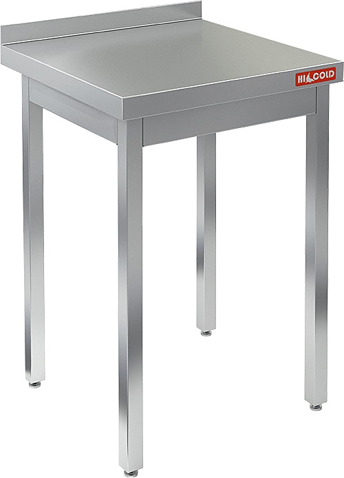 Столешница выполнена из нержавеющей стали толщиной 0,8 мм, усилена листом ДСП, опорные ножки - из трубы 40х40 мм из нержавеющей стали.
