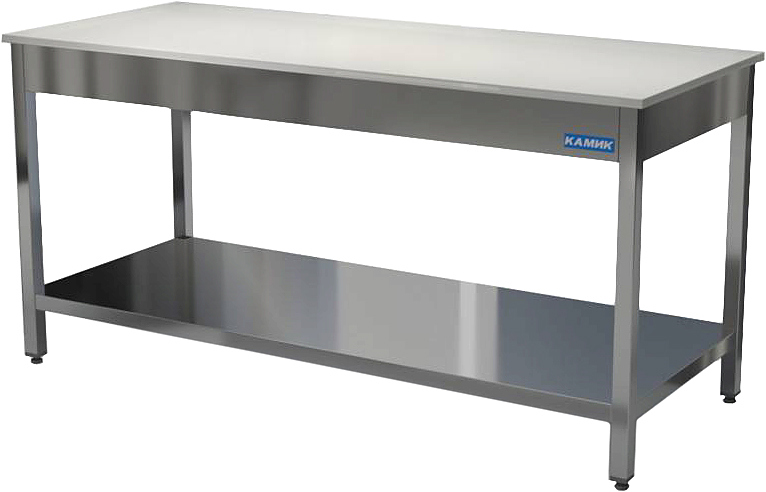 Разделочный стол КАМИК С-СПР-4177+П используется на предприятиях общественного питания и торговли для разделки и приготовления различных блюд. Каркас стола выполнен из нержавеющей стали AISI 430, столешница - полипропилен толщиной 20мм. Ножки - труба 40х40 мм.