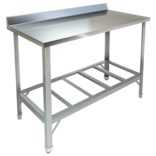 Производственный стол KAYMAN СП-255/1208 используется на предприятиях общественного питания и торговли для раскатки теста и обработки ингредиентов для приготовления блюд, а также как дополнительное место для установки и хранения кухонных приборов, инвентаря и сухих продуктов. Каркас выполнен из уголка оцинкованной стали, столешница - из нержавеющей стали AISI 430, столешница усилена листом ЛДСП толщиной 16 мм.