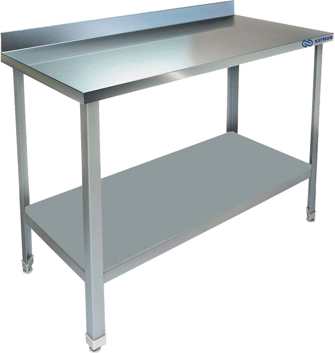 Производственный стол KAYMAN СП-242/0707 используется на предприятиях общественного питания и торговли для раскатки теста и обработки ингредиентов для приготовления блюд, а также как дополнительное место для установки и хранения кухонных приборов, инвентаря и сухих продуктов. Материал каркаса - нержавеющая сталь AISI 430 (толщина 1.5 мм), материал полки и столешницы - нержавеющая сталь AISI 430 (толщина 0.8 мм).