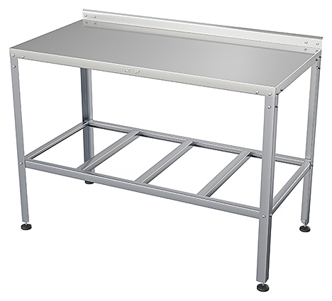 Производственный стол ATESY СР-Б-1-1300.600-02 серии Бюджет используется на предприятиях общественного питания, торговли и пищевых производствах для раскатки теста, приготовления различных блюд и хранения кухонных принадлежностей. Материал рабочей поверхности – нержавеющая сталь AISI 430 усилена листом ЛДСП (толщина 16 мм), материал каркаса и решетчатой полки – оцинкованная сталь (уголок 40x40 мм толщиной 1.2 мм), конструкция - разборная.