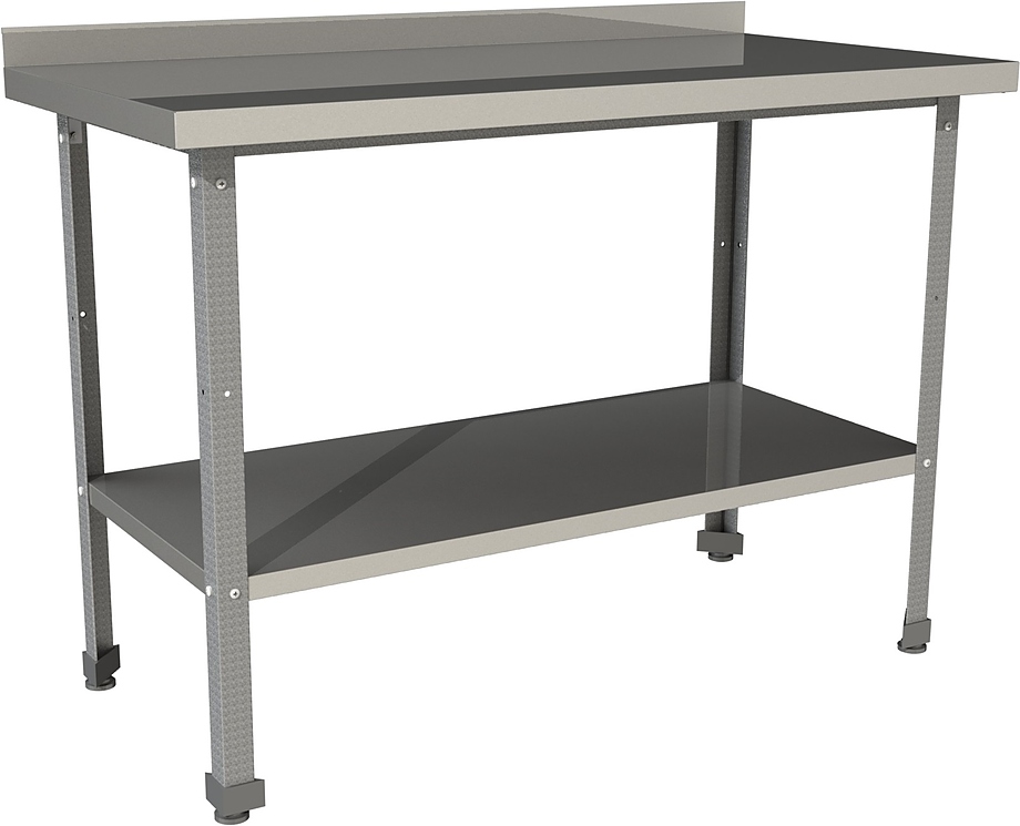 Производственный стол Restoinox СП-12/6-БП-ЭЦ серии 600 предназначен для обработки продуктов питания, раскатки теста, хранения кухонного инвентаря и оборудования на предприятиях общественного питания, торговли и пищевых производствах. Опоры ножек регулируются по высоте. Материал ножек - уголок из оцинкованной стали, материал рабочей поверхности и полки - нержавеющая сталь AISI 430.