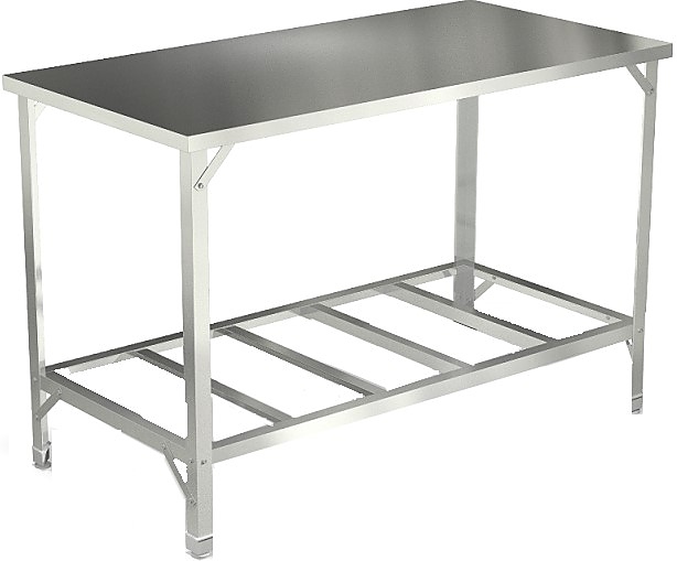 Стол производственный AppetiTT СПРО-907 Ц предназначен для раскатки теста, обработки ингредиентов и хранения кухонного инвентаря на предприятиях общественного питания, торговли и пищевых производствах. Материал каркаса - оцинкованная сталь толщиной 1.5 мм, материал столешницы - высококачественная нержавеющая сталь AISI 430 толщиной 0.5 мм, материал подложки - ДСП толщиной 16 мм, материал полки-решетки - оцинкованная сталь толщиной 0.8 мм.