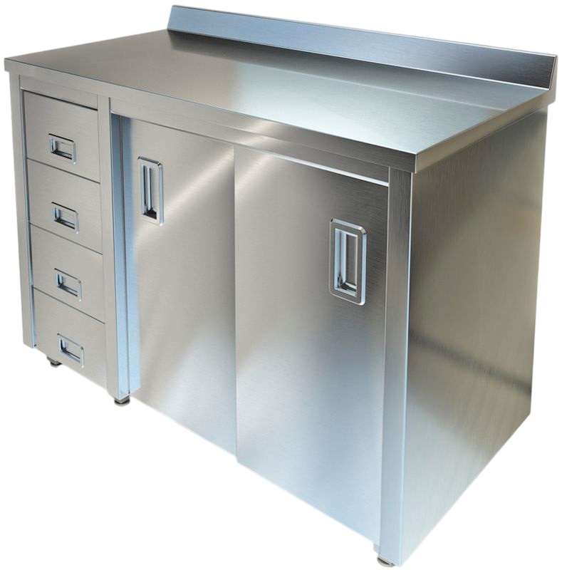 Производственный стол-тумба Техно-ТТ СПС-226/1700-Л предназначен для разделки и обработки пищевых продуктов, а также для расстановки и хранения посуды и кухонного инвентаря на предприятиях общественного питания, торговли и пищевых производствах. Стол оснащен бортом, 2 дверьми-купе и 4 выдвижными ящиками. Материал корпуса - нержавеющая сталь AISI 430, материал столешницы - нержавеющая сталь AISI 304, материал задней стенки - оцинкованная сталь.
