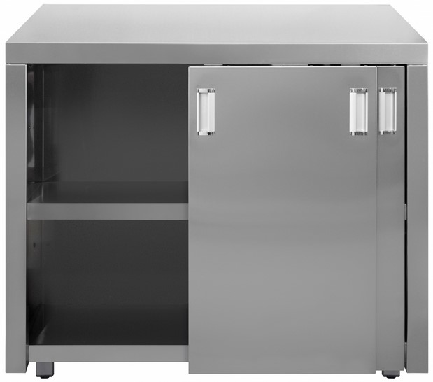 Стол-тумба Luxstahl СТУ2-10/6 используется на предприятиях общественного питания, торговли и пищевых производствах для обработки ингредиентов, приготовления различных блюд, раскатки теста и хранения кухонного инвентаря. Модель оснащена дверьми-купе, сплошной полкой и съемным бортом. Материал изделия - высококачественная нержавеющая сталь AISI 430, усиленная листом ЛДСП толщиной 15 мм.
