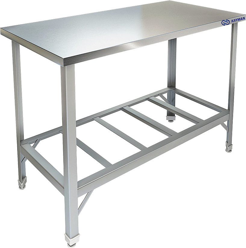 Центральный производственный стол KAYMAN СЦ-255/0606 используется на предприятиях общественного питания и торговли для раскатки теста и обработки ингредиентов для приготовления блюд, а также как дополнительное место для установки и хранения кухонных приборов, инвентаря и сухих продуктов. Каркас выполнен из уголка оцинкованной стали, столешница - из нержавеющей стали AISI 430, столешница усилена листом ЛДСП толщиной 16 мм.
