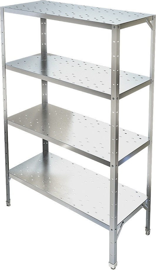 Кухонный стеллаж Техно-ТТ СТР-454/600 используется на предприятиях общественного питания, торговли и пищевых производствах для хранения посуды, кухонного инвентаря и продуктов. В модели предусмотрены регулируемые ножки и полки. Тип каркаса - разборный, полки - перфорированные. Материал каркаса - нержавеющая сталь AISI 430 (труба 40х20 мм толщиной 1.2 мм), материал полок - нержавеющая сталь AISI 304 (толщина 0.8 мм).