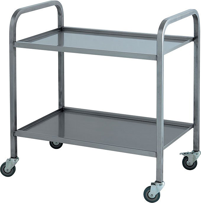 Сервировочная тележка ATESY ТС-Л-2-800.500.850-02 серии Люкс используется на предприятиях общественного питания для перемещения готовых блюд, напитков и посуды в зал приема пищи, а также для подачи грязной посуды из зала в моечное отделение. Модель оснащена 2 вместительными полками с герметичными бортиками. Полки выполнены из нержавеющей стали AISI 304, рамы - из нержавеющей трубы AISI 304 сечением 25х25 мм.