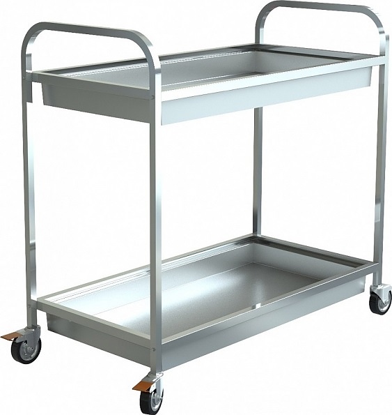Тележка для сбора посуды Assum ТС-1 предназначена для транспортировки использованных тарелок,  стаканов, столовых приборов и инвентаря на предприятиях общественного питания и торговли. Модель оснащена 2 глубокими полками и 2 ручками. Полки выполнены из высококачественной нержавеющей стали AISI 430, каркас – из профиля трубы квадратного сечения из нержавеющей стали AISI 430.