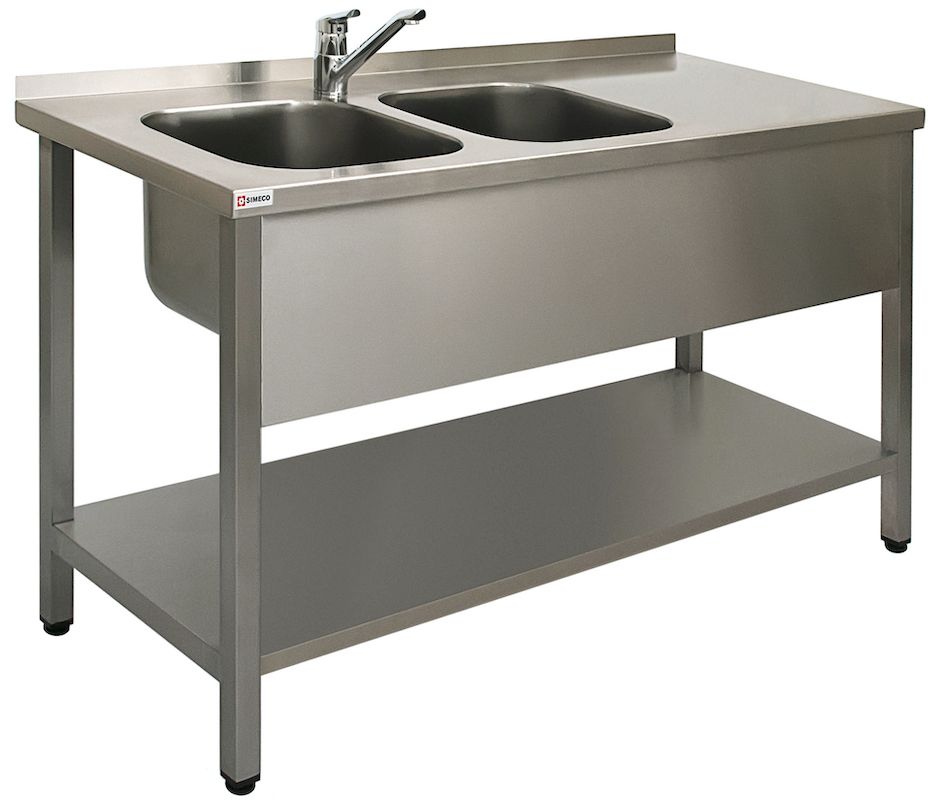 Ванна моечная двойная Simeco ВМ2EЛ1406П используется на предприятиях общественного питания и торговли для мытья и ополаскивания продуктов, посуды и различного инвентаря. Модель оснащена фартуком, нижней сплошной полкой, задним бортиком 40 мм и регулируемыми по высоте ножками, что позволяет компенсировать неровности пола. Сварной каркас выполнен из трубы 40х40 мм, мойки цельнотянутые - из нержавеющей стали AISI 304 толщиной 1 мм, выпуск - из нержавеющей стали.
