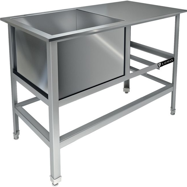 Моечная ванна KAYMAN ВМ-414/530 Л используется на предприятиях общественного питания и торговли для мойки продуктов питания, посуды и кухонных принадлежностей. Каркас выполнен из оцинкованного стального уголка, емкость и рабочая поверхность - из нержавеющей стали AISI 304.