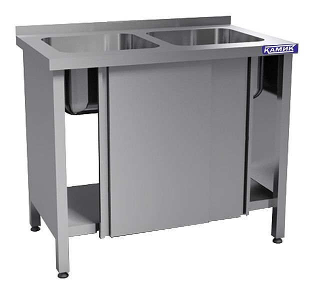 Моечная ванна КАМИК ВМ-2-41126 используется на предприятиях общественного питания и торговли для мойки посуды, овощей и фруктов. Сварной каркас и столешница выполнены из нержавеющей стали AISI 430, цельнотянутая емкость - из нержавеющей стали AISI 304.