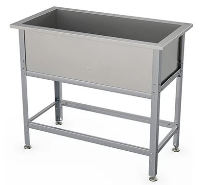 Моечная ванна ATESY ВСМ-С-1.1450.700-02-Н серии Стандарт предназначается для мытья посуды и кухонного инвентаря, овощей и фруктов, а также для оттайки замороженных продуктов. Кромки ванны имеют безопасную фальцовку, углы зашлифованы. Ножки регулируются по высоте. Тип конструкции - разборная. Материал каркаса - уголок 40x40 из нержавеющей стали AISI 430 (толщина 0.8 мм), материал ванны - нержавеющая сталь AISI 304 (толщина 0.8 мм), материал опоры регуляторов высоты - нержавеющая сталь с пластиковым основанием.