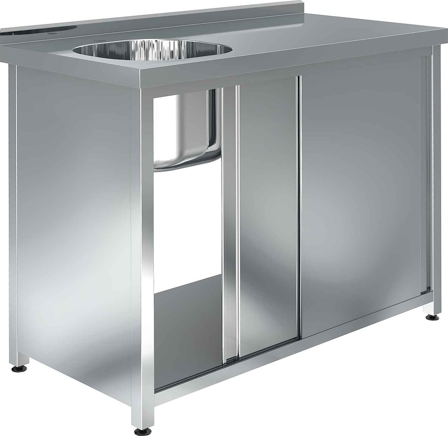 Моечная ванна Assum СПКБ-18/7-ВЛ5 серии Премиум используется на предприятиях общественного питания и торговли для мойки продуктов, посуды и прочего кухонного инвентаря. Модель оснащена 1 раковиной, бортом, дверями-купе, отверстием для смесителя и выпуском. Материал ванны - нержавеющая сталь AISI 304, материал столешницы - нержавеющая сталь AISI 430 с усилением ДСП, материал стенки, дверей и полки - нержавеющая сталь AISI 430, материал каркаса - нержавеющая сталь AISI 430 (труба 40х40 мм), материал опор ножек - пластик.