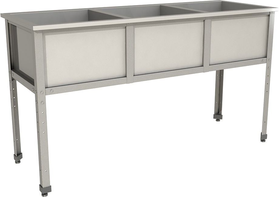 Моечная ванна Restoinox ВМС-3/5-ЭК предназначается для мытья посуды, кухонного инвентаря и продукции на предприятиях общественного питания, торговли и пищевых производствах. Материал каркаса - уголок из нержавеющей стали (40х40 мм), материал емкости - нержавеющая сталь AISI 430.