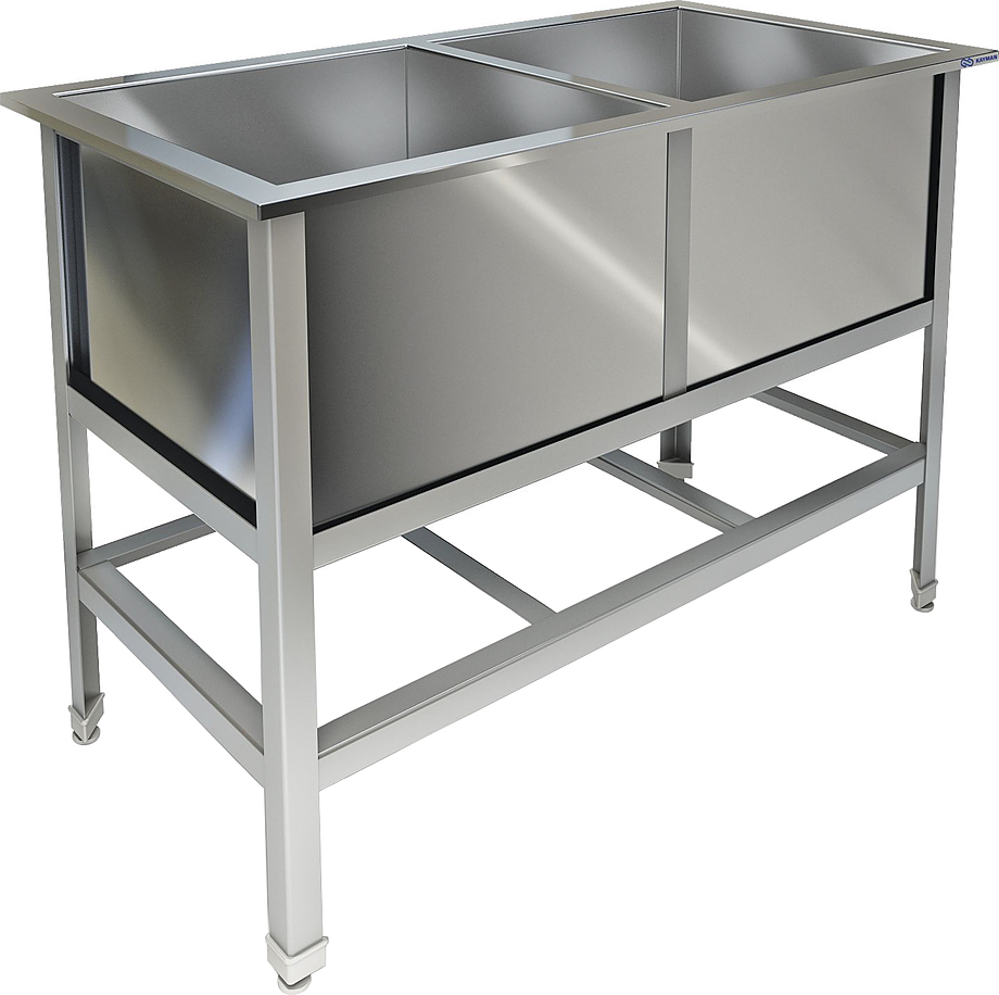 Моечная ванна Техно-ТТ ВМ-22/430 используется на предприятиях общественного питания и торговли для мытья и ополаскивания продуктов, посуды и различного инвентаря. Модель с закругленными краями оснащена регулируемыми по высоте ножками, что позволяет компенсировать неровности пола. Сварной каркас выполнен из нержавеющей стали AISI 430, сварные мойки - из нержавеющей стали AISI 304 толщиной 0,8 мм, выпуски - из нержавеющей стали.