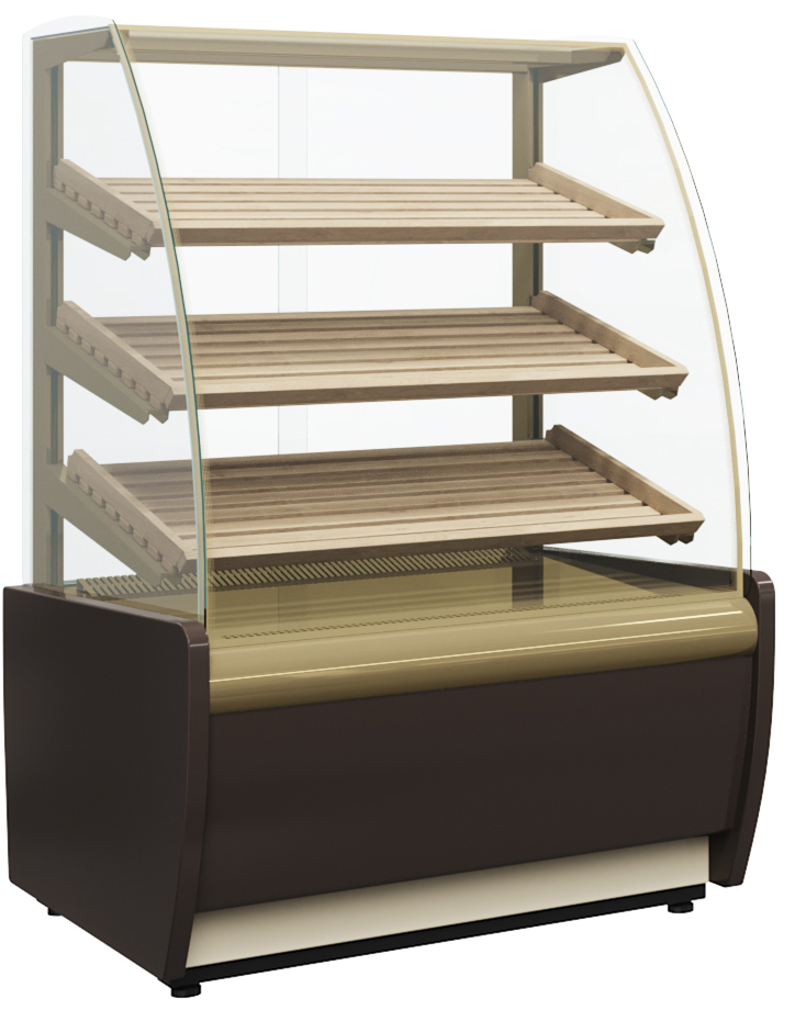 Хлебная витрина Carboma K70 N 0,9-2 LIGHT используется на предприятиях общественного питания и торговли для демонстрации и кратковременного хранения хлебобулочных изделий. Модель оснащена боковыми стеклами, 3 наклонными деревянными решетчатыми полками и регулируемыми ножками высотой от 20 до 35 мм. Основание и декоративные панели выполнены из стали, боковины - из пластика с пенополиуретановой теплоизоляцией, раздвижные задние створки - из оргстекла.
