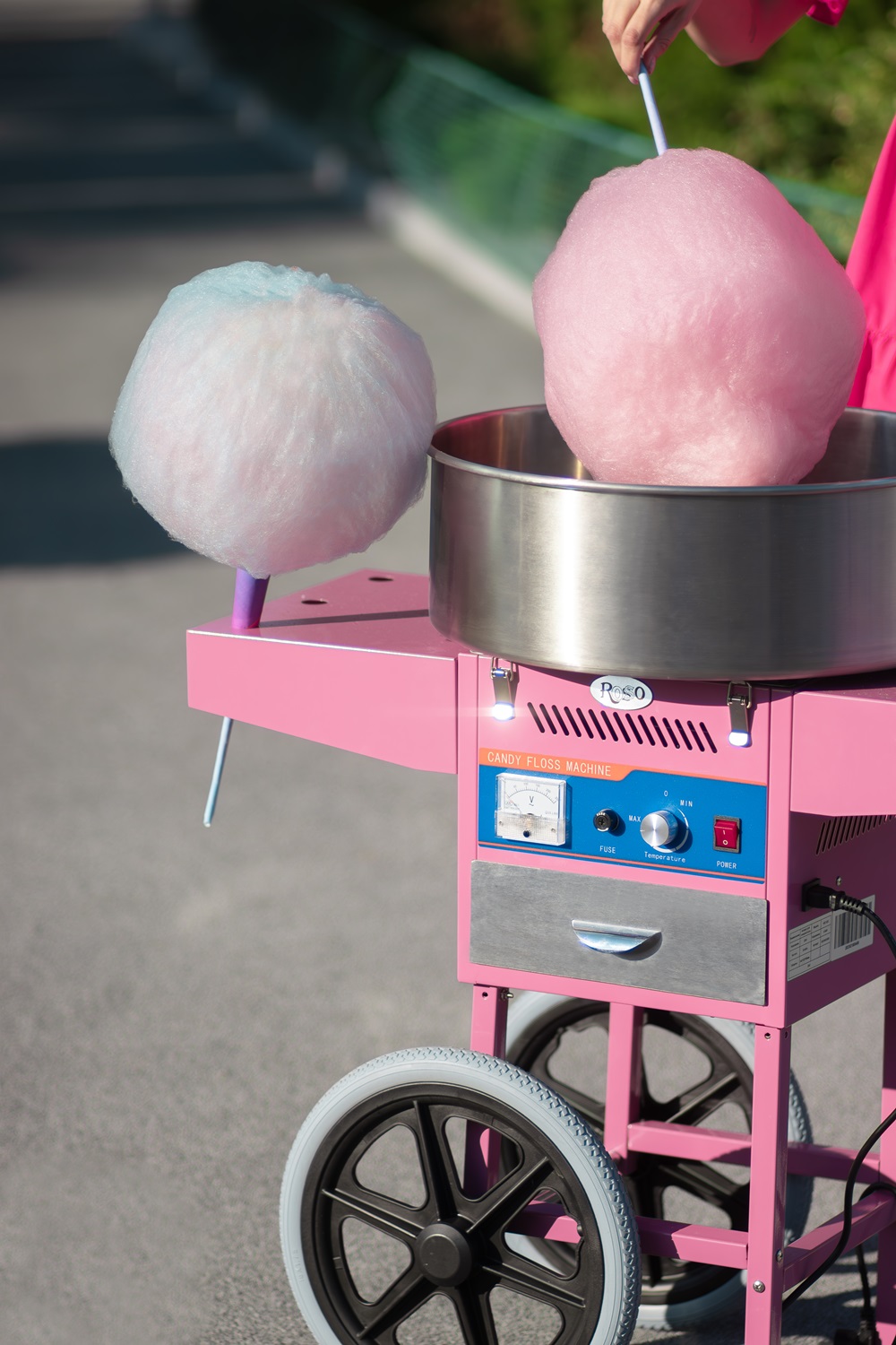 Аппарат Rosso HEC-03C используется на предприятиях общественного питания, торговли и пищевых производствах для приготовления сахарной ваты. Модель оснащена рабочей головкой с ТЭНом, термостатом, вольтметром, выдвижным ящиком и мобильной тележкой. Материал  чаши-ловителя - высококачественная нержавеющая сталь.