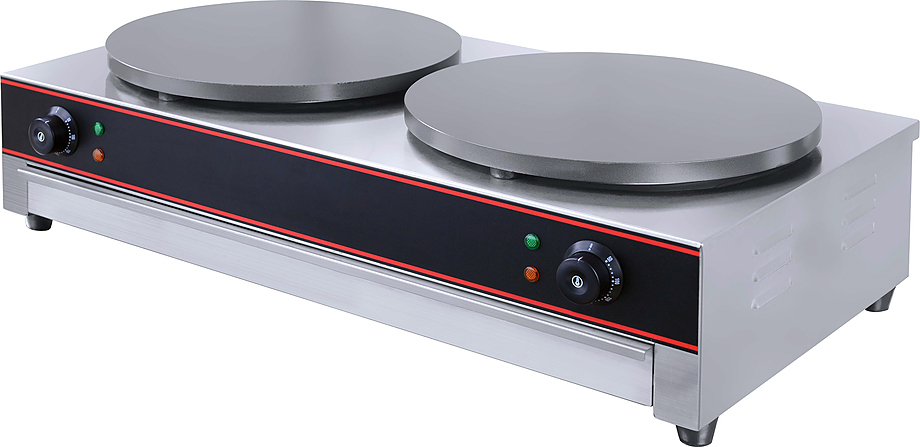 Блинница Hualian HCM-2 предназначается для выпечки блинов классической круглой формы на предприятиях общественного питания, торговли и пищевых производствах. Механическая панель управления с 2 терморегуляторами. Расположение нагревательных элементов обеспечивает равномерное прогревание жарочных поверхностей, что гарантирует приготовление блинов без подгорания. Материал корпуса - нержавеющая сталь, материал жарочных поверхностей - антипригарный материал с тефлоновым покрытием.