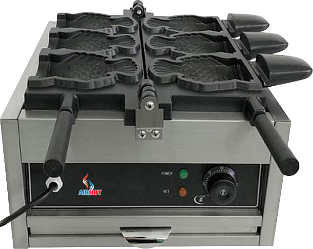Вафельница Airhot WBF-3 используется на предприятиях общественного питания и торговли для выпекания вафель в форме рыбок. Каждая вафля может быть наполнена начинкой. Модель оснащена терморегулятором и электронным таймером. Корпус выполнен из нержавеющей стали, жарочная поверхность - из чугуна с антипригарным покрытием.