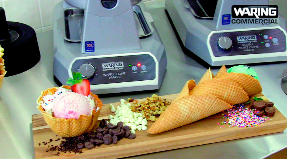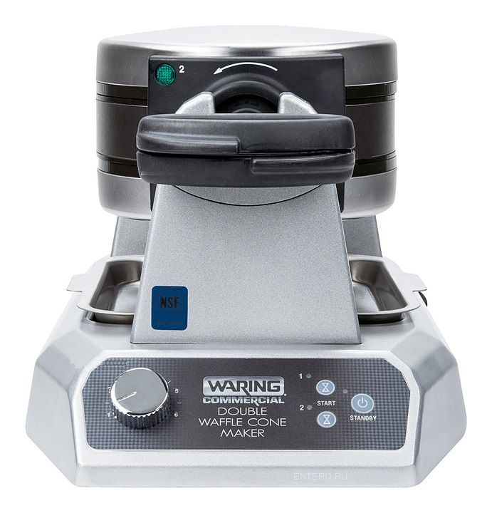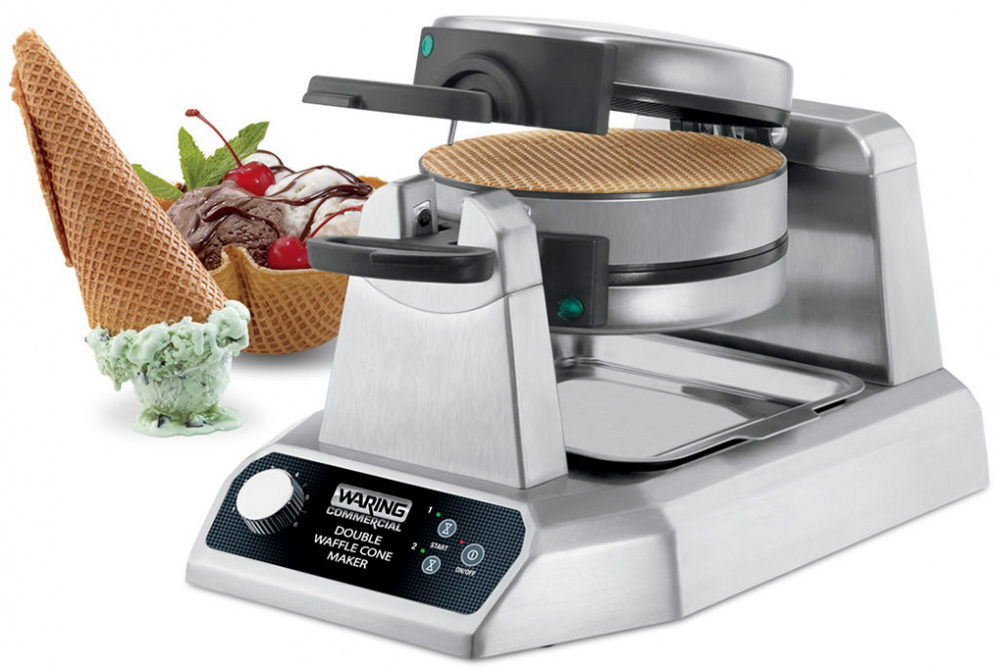 Вафельница Waring WWCM200 используется на предприятиях общественного питания и торговли для выпекания конических вафель. Рабочие поверхности покрыты тройным антипригарным покрытием для простого извлечения готовых вафель и легкой очистки пластин. Вмонтированные в пластины нагревательные элементы обеспечивают точный контроль температуры и равномерное распределение тепла.