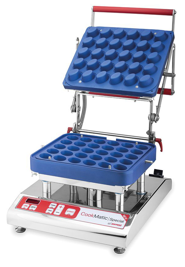 Тарталетница Pavoni NEWCOOKMATIC SPECIAL используется в пекарнях и кондитерских, на предприятиях пищевой промышленности и общественного питания для формовки и выпечки основ (тарталеток) из песочного и слоеного теста различной формы и размера. Модель оснащена электронным таймером со звуковым сигналом окончания цикла выпечки.